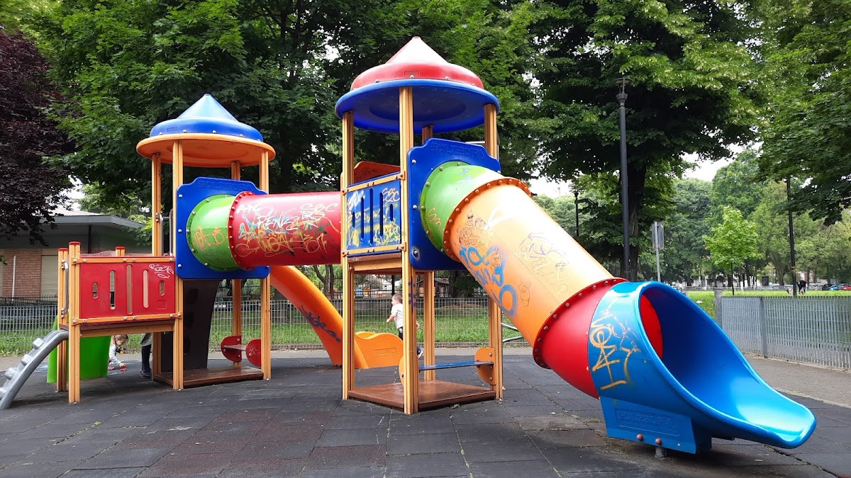 Questa area giochi è divisa in tre parti : una delle tre è fuori servizio e transennata da molti mesi , ormai. Che peccato!La parte invece con i tubi è molto bella perché è strutturata come una specie di castello con 3 scivoli e 3 punti di risalita!L'ultima parte, un po' più in là, ha altalene e bei percorsi ma è al sole di pomeriggio mentre la parte dei tubi è all'ombra!Accanto all aerea giochi c'è un nido e una materna. In definitiva un bel posto per far giocare i propri bambini! ...
