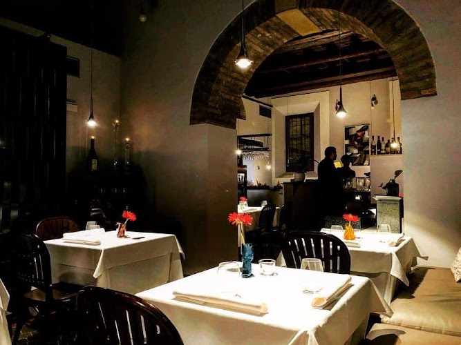 Osteria molto interessante, disposta su due piani, piano terra e sotterraneo, con le volte al soffitt o.Serve piatti tipici dove si incrociano le tradizioni emiliane e romagnole, ed è perfetto per chi vuole assaporare il gusto misto, essendo le cucine emiliane e romagnole davvero ottime.Abbiamo ordinato un antipasto leggero e saporito allo stesso tempo, ed un secondo dello stesso tenore, il tutto accompagnato dalle piadine calde e già porzionate.Vino sfuso sangiovese di ottima qualità.Servizio ottimo e molto cordiale, ambiente veramente suggestivo e prezzi in linea con la qualità del cibo.Nota bene: nei sotterranei non c'è rete, quindi il telefono dimenticatelo pure. ...