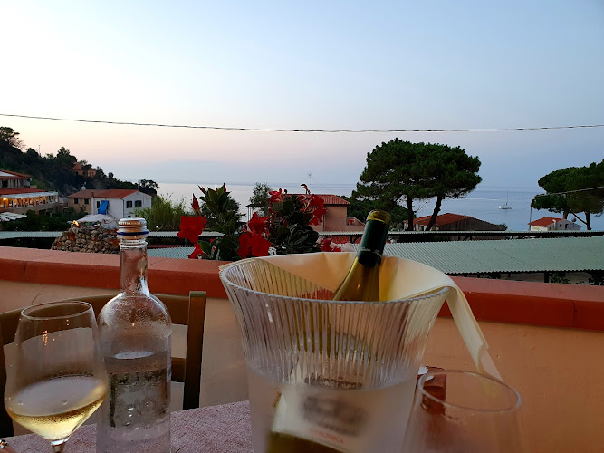 Ristorante rustico all'aperto, con vista mozzafiato del tramonto sul mare. Cibo di alta qualità con a ntipasto di mare su piatto unico da dividere tra i commensali ( noi eravamo in quattro) poi un primo piatto a scelta tra penne al ragù di cinghiale e paccheri alle alici, poi tiramisù il tutto accompagnato da un vino elbano, in un'atmosfera suggestiva all luce di lampade e candele. Forse un po' caro perché solo l' antipasto è costato 100 euro( 25 a testa) , io poi avrei preferito un secondo invece che il primo ma non è contemplato. Cmq tutto di ottima qualità. ...