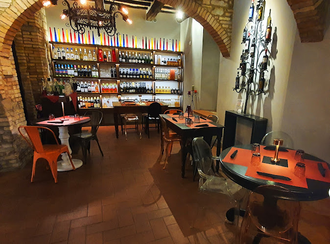 Domenica fuori porta nella bellissima Montalcino, giornata bellissima seppur fredda. Ora di pranzo e passeggiando per le sue stradine ci imbattiamo in questa enoteca e.. qualcosa di più ci attira ad entrare nonostante l’ingresso celi la bellezza dei suoi locali. Ci fanno accomodare su un tavolino alto con sgabelli nonostante alcuni tavoli siano liberi (durante il nostro pranzo non sono stati occupati) e veniamo accolti molto cordialmente. Ottimo il consiglio sulla porzione del tagliere misto con formaggi che per due sarebbe stato oggettivamente troppo e ottimo il consiglio su due calici di rosso di Montalcino di due diverse aziende vinicole. Prezzo altino sia per la sistemazione che per il cibo ma ambiente molto bello e servizio competente. Ottima scelta se si vuol appagare il proprio palato nella strepitosa Montalcino. ...