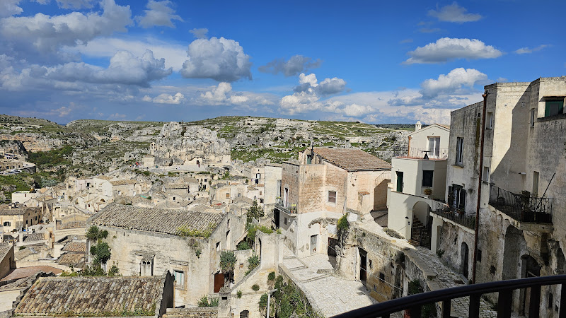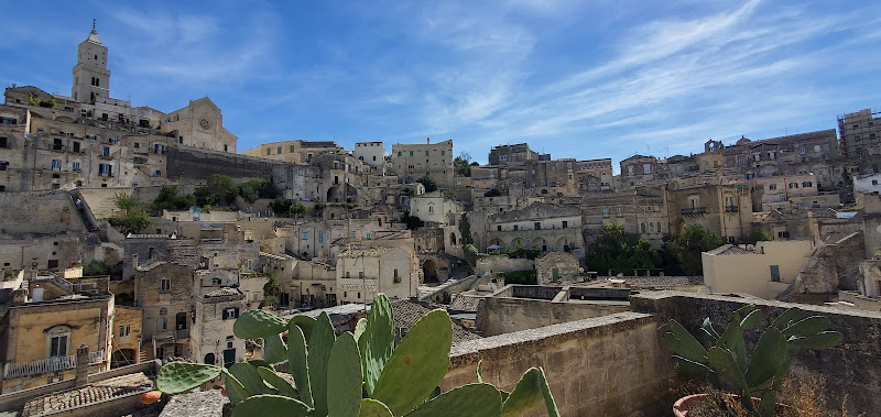 Patrimonio Unesco. Un luogo magico, che rievoca la vita di secoli fa. Una passeggiata nei Sassi di Ma tera e sembra di tornare alla preistoria, le grotte, il caldo e il freddo, gli elementi naturali, la semplicità e la durezza della vita contadina. Mi piacciono molto anche i dintorni, il belvedere sui Sassi. Per raggiungerlo, si va in direzione Laterza sulla ss7 (via Appia antica), si gira a destra poco dopo un vecchia cava di tufo. In ogni caso, sulla destra bisogna guardare al grande spiazzo parcheggio dei pullman turistici, ecco. Anche il belvedere ha il suo immenso fascino: strapiombi sulla gravina, vento in faccia, i Sassi di Matera col loro splendore di cavità nere di ingresso nella pietra viva , davanti a voi, si stagliano in tutta la sua lunghezza. Sentieri battuti e non, l'ideale anche per arrampicate o parkur o trekking. Nel loro complesso, i Sassi offrono loro, in termini di accoglienza turistica, è adeguata al ruolo di Capitale della Cultura e della Storia. E lo assolve egregiamente. ...