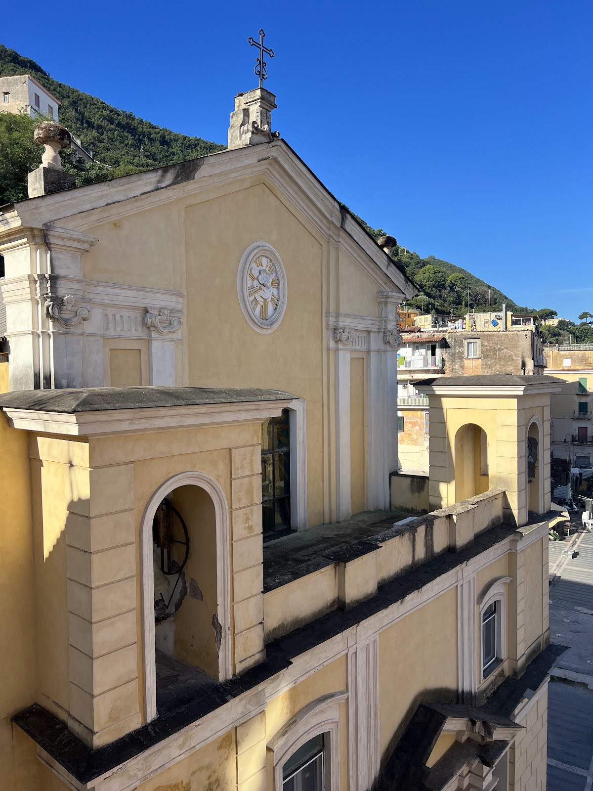 Molto bella la posizione e il panorama che si gode dall'affaccio sul golfo di Napoli e sulle isole Ca pri e Ischia. C'è un parcheggio.La struttura è quasi totalmente accessibile in carrozzina dal parcheggio alla terrazza panoramica, mentre la chiesa ha una scalinata nell'ingresso principale, non so se ha un'altra entrata più accessibile.Un po' scomoda la strada per arrivare su con la macchina. ...