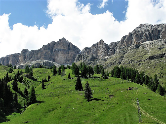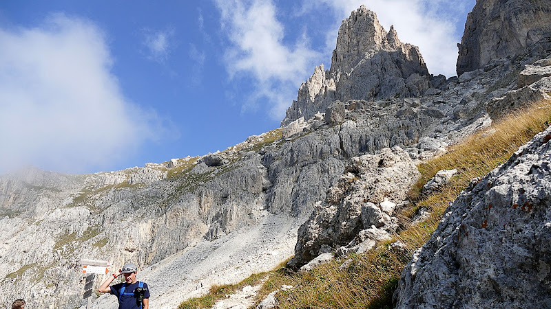 Bellissimo tragitto che dal Passo Sella abbiamo fatto per andare al rifugio Comici. Abbiamo lasciato l'auto lungo la strada prima del parcheggio a pagamento sul Sella. C'è da camminare un po' lungo strada, ma se si trova posto è gratis. Lo spettacolo dei massi che sembrano caduti dal cielo si trova quasi subito. Il sentiero si divincola tra massi più o meno grossi ed arbusti a basso fusto. C'è anche qualche roccia più alta che viene usata per fare scalate o climbing. Passate le rocce il sentiero prosegue fra i prati fino a raggiungere facilmente il rifugio Comici, ai piedi della parete principale del Sasso lungo. Bella passeggiata e come sempre da queste parti, paesaggi spettacolari. ...