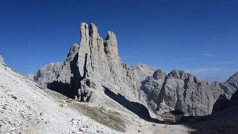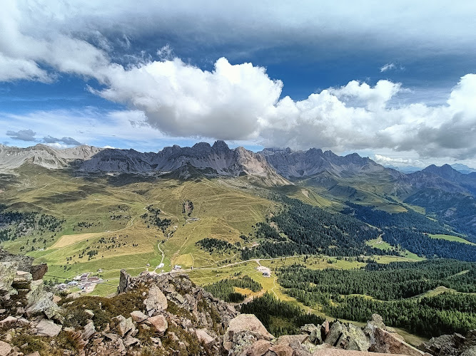 Un escursione stupenda, da fare!Noi siamo partite dal monte pana, da santa cristina. Per raggiungere il monte si può usare la seggiovia oppure seguire il sentiero in mezzo al bosco ma sono 200 mt di dislivello in salita, circa 40 minuti a piedi.Dalla cima del monte Pana si prosegue in direzione rif. Vicenza. Una camminata in mezzo al prato con una salita dolce attraverso zone boscose ma con sentieri sui sassi.Vi troverete a un bivio con l’indicazione del rif. Comici, tenetevelo a sinistra per proseguire in direzione rif. Vicenza sentiero 525.Questo ultimo tratto è tutto in salita, una salita serpentinata dove già in lontananza potete vedere il bellissimo rifugio Vicenza che si trova ai piedi della montagna dove si incontrano sasso lungo e sasso piatto.Una volta arrivati in cima, una tappa al rifugio con uova e speck è d’obbligo per poi ripartire velocemente per l’ultimo tratto che ci porterà al Toni Demetz.Ripartiamo dal rif. Vicenza, sempre sentiero 525. Il paesaggio comincia a cambiare, ci troviamo esattamente tra i due sassi con una panorama spettaccolare. Il sentiero parte in salita per poi arrivare a una leggera piana tra sassi enormi che ci accompagnerà all’ultimo tratto tutto un salita tra sassi e rocce.Durante la salita consiglio le bacchette da camminata per aiutarsi e rendere la fatica meno impegnativa, ci sarà un piccolo tratto in corda ma è piu un aiuto per le persone a salire più facilmente in quanto non è assolutamente un tratto esposto! Questo panorama ci accompagna fino al rif. Toni Demetz dopo circa due ore e mezza dalla nostra partenza dal monte Pana. Rifugio stupendo con una vista meravigliosa sulla forcella del sassolungo, città dei sassi e passo sella!Ripartiamo dal rifugio in questa discesa direzione Passo Sella sentiero 525.Una Volta arrivati infondo proseguiamo direzione città dei sassi/ rif. Comici, sentiero 526 lo trovate appena arrivate infondo alla discesa della forcella, tenendovi alle spalle l’impianto di risalita, trovate davanti a voi una piccola salita è dove imboccare il sentiero direzione rif. Comici.Una passeggiata leggermente in salita stipends in mezzo alla città dei sassi.Arriviamo finalmente dopo circa 40 minuti al rifugio Emilio Comici dove finalmente possiamo rilassarci e apprezzare la vista meravigliosa sul sasso lungo.Per rientrare a Santa Cristina proseguire dal rifugio Comici sentiero 526 finché non troverete un cartello con bivio che vi indicherà sentiero 23 direzione Santa Cristina. Questo ultimo tratto vi farà ritrovare il parcheggio dove avete lasciato la macchina ai piedi del monte Pana.Sentiero ad anello di circa 6 ore considerando una pausa di mezz’ora al rifugio Vicenza per un pranzo veloce. Il paesaggio è qualcosa di indescrivibile, si passa dai prati ai boschi alla roccia.A mio parere una delle escursioni più belle di tutta la val Gardena/ val di Fassa.Noi abbiamo fatto il giro ad anello in entrambi i sensi:1- da Monte Pana direzione Rif. Vicenza - Toni Demetz - Città dei Sassi - Comici e rientro a Santa Cristina.2- partenza passo Sella - Forcella Sasso Lungo - Toni demetz - Vicenza - Comici rientro a passo Sella > questa escursione la descriverò nel dettaglio nel punto di Google Maps dove è indicato il sasso lungoPer entrambi i giri considerate 5/6 ore. ...